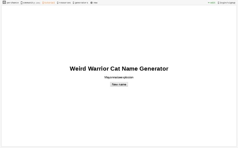 We have a series of different character name generators that produce personality descriptions and names from different countries. Using our cat name generator is a simple solution for finding male and female cat and kitten names for your feline family member. It will help you to generate 1000's of cool cat names which you keep clicking on get cat names button to generate more random cat names as soon as you get your favourite cat names. Use for testing as database. Cat names that are friendly, tough, funny, cute, geeky and more!